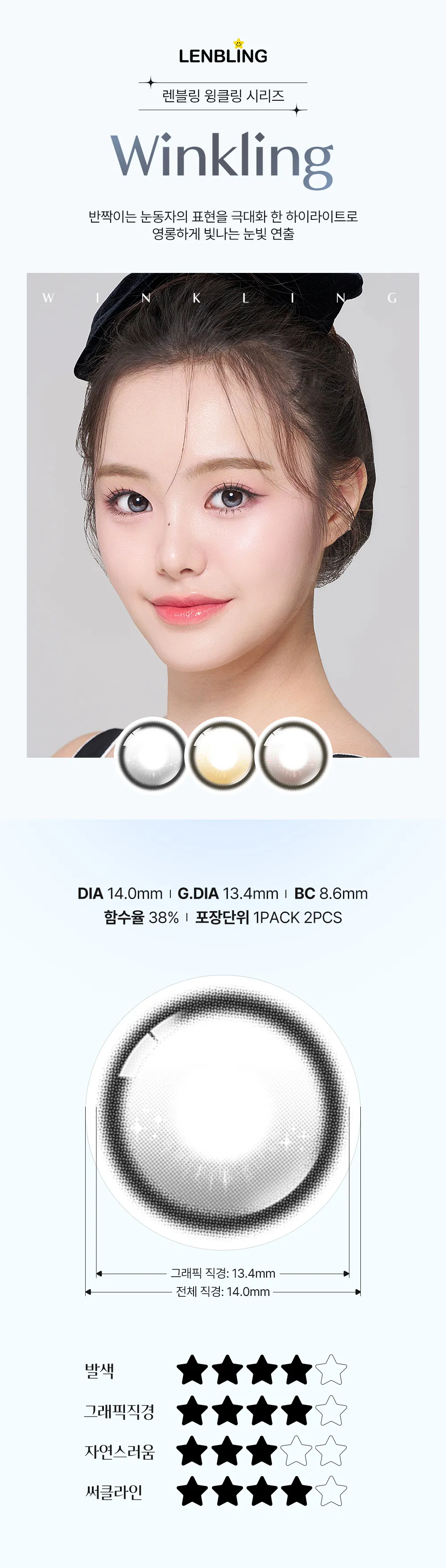 DIA 14.0mm GDIA 13.4mm BC 8.6mm WATER 38%